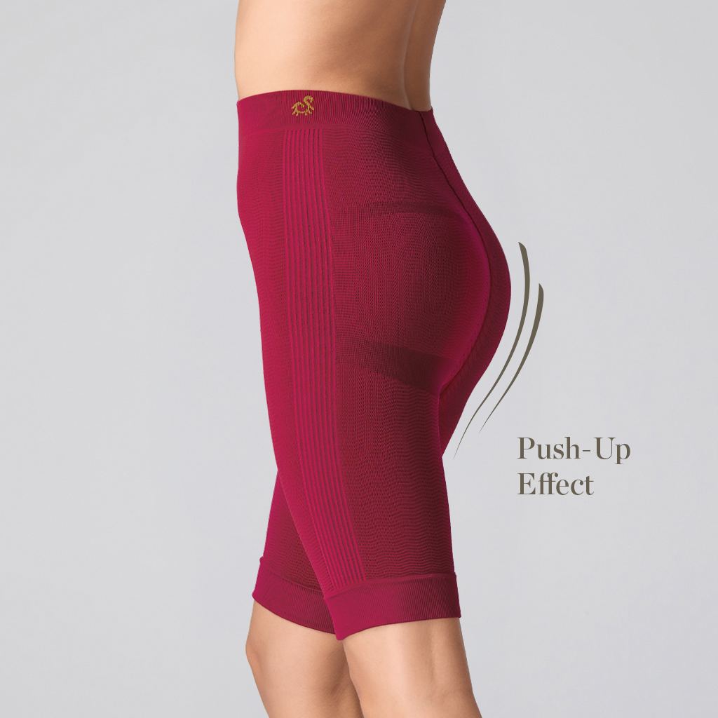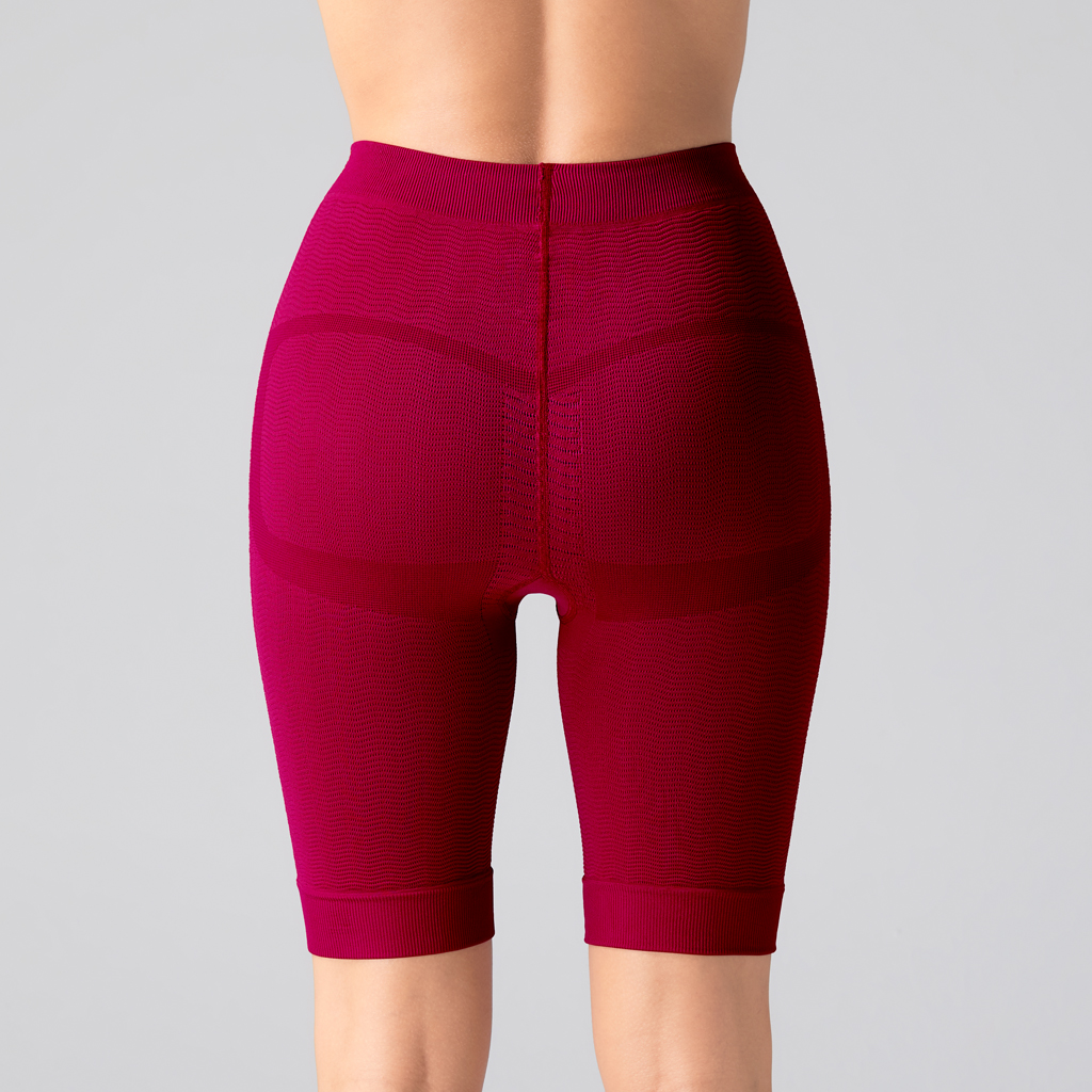 Mikro masaj etkili kompresyonlu bermuda şort. Olağanüstü elastiktir ve vücudu rahatlıkla sarar. Özellikle opak yapısı sayesinde günlük ve spor aktiviteleri sırasında dışarıda giymek için idealdir. Ürün, portakal kabuğu görünümünün (selülit) tedavisine ve lenfödemin yönetimine yardımcı olmak amacıyla tasarlanmıştır. Özel üç boyutlu dalgalı kumaş, mikro dolaşımı uyaran ve diürez yoluyla fazla sıvıların atılmasına yardımcı olan faydalı bir mikro masaj gerçekleştirir. Tüm vücudu inceltir ve yüksek teknoloji ürünü anatomik korse, karın bölgesini toparlar ve kalçaları şekillendirir; kalçayı kaldıran destek bandı ile kıskanılacak bir silüet sağlar. Nefes alabilir yapısı sayesinde kötü kokuların oluşmasını önler. Vücudun doğal ısı enerjisini uyaran, kızılötesi ışınlara dönüştüren ve hoş bir sıcaklık kontrolü etkisiyle cilt dokusuna geri gönderen mineral katkılı FIR (Uzak Kızılötesi Işınlar) içeren bir iplikten üretilmiştir. Uyluk, kalça ve karın bölgesinin tonunu ve görünümünü iyileştirir. Ağ kısmı ve düz dikişleri mevcuttur.